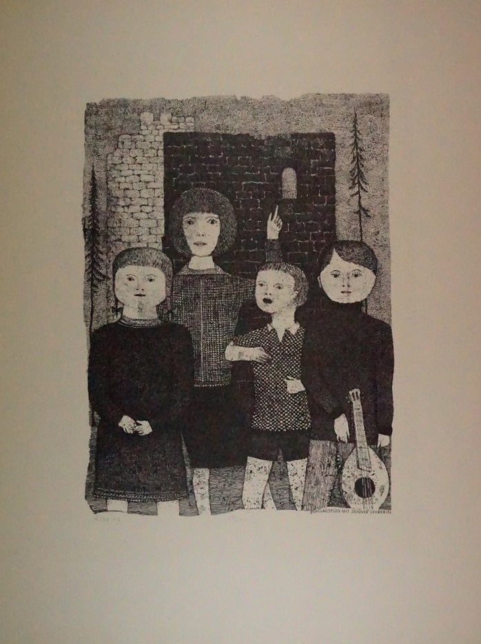 Galerie Schulausflug mit junger LehrerinMappe: Kabinettpresse 16.Druck "Kinder"Radierung, 31,5x23,0 49,3x37,7 cm, 39/115 1971Mörstedt Alfred Traugott