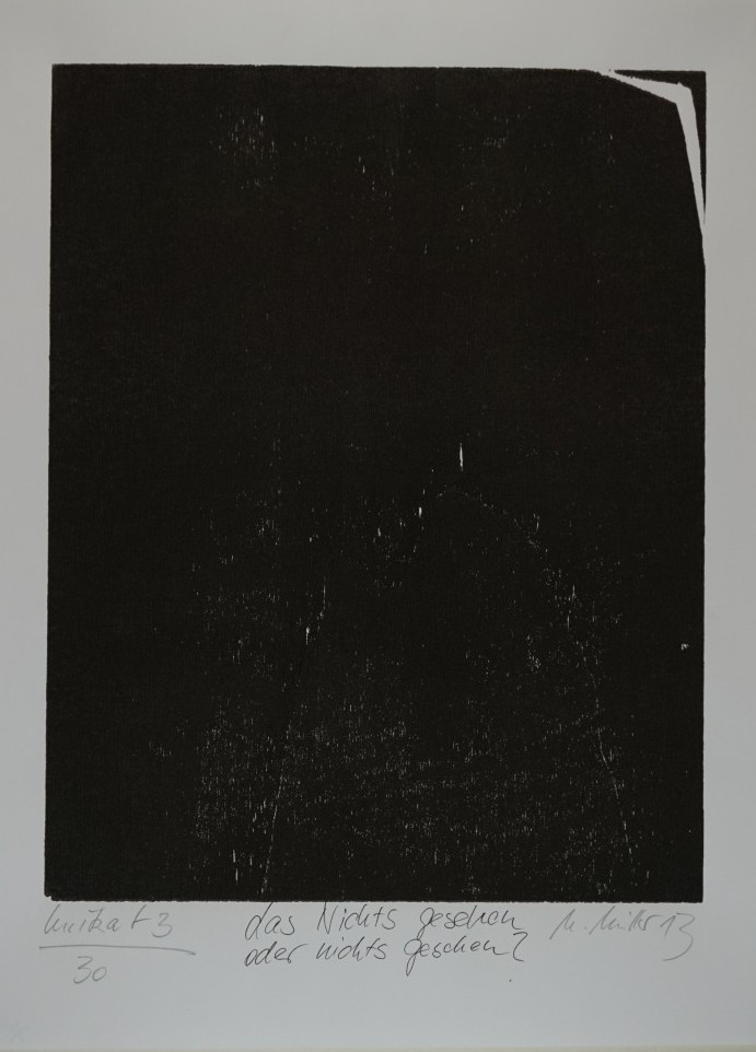 Galerie Bl.10 das Nichts gesehenMappe: 13.HolzbildhauerpleinairHolzschnitt, 32,0x25,0 40,0x29,5 cm, 3/30 2013Müller Frank Michael