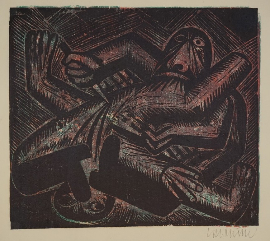 Galerie zu Jarry "Ubu roi" (Der Rüpel)Farbholzschnitt, 43,8x49,5 65,0x68,5 cm, 1977Müller Gerhard Kurt