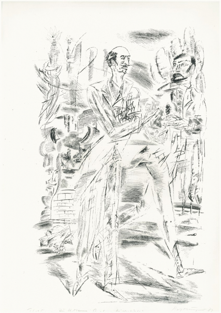 Galerie zu H. Mann "Empfang bei der Welt", "Die Händler"Schablithografie, 37,0x23,0 50,0x34,0 cm, I 18/25 1972Münzner Rolf