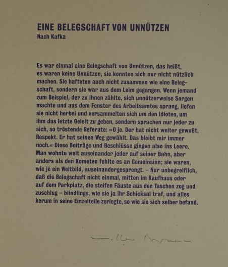 Galerie Bl.3 Eine Belegschaft von UnnützenMappe: 70.Geburtst.Karl-Georg HirschText, 31,0x20,0 cm, 47I100 Braun Volker