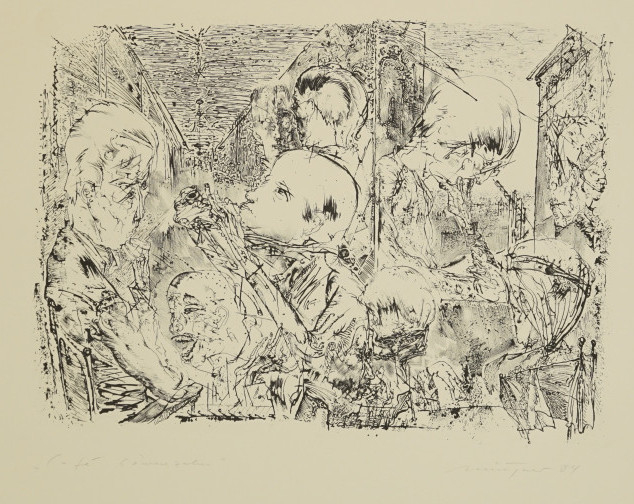 Galerie "Café Loewenzahn"Mappe: "Der Mensch und die Stadt" zum 100. Geb. von Max BeckmannSchablithografie, 29,5x41,0 53,5x68,0 cm, EA 1984Münzner Rolf
