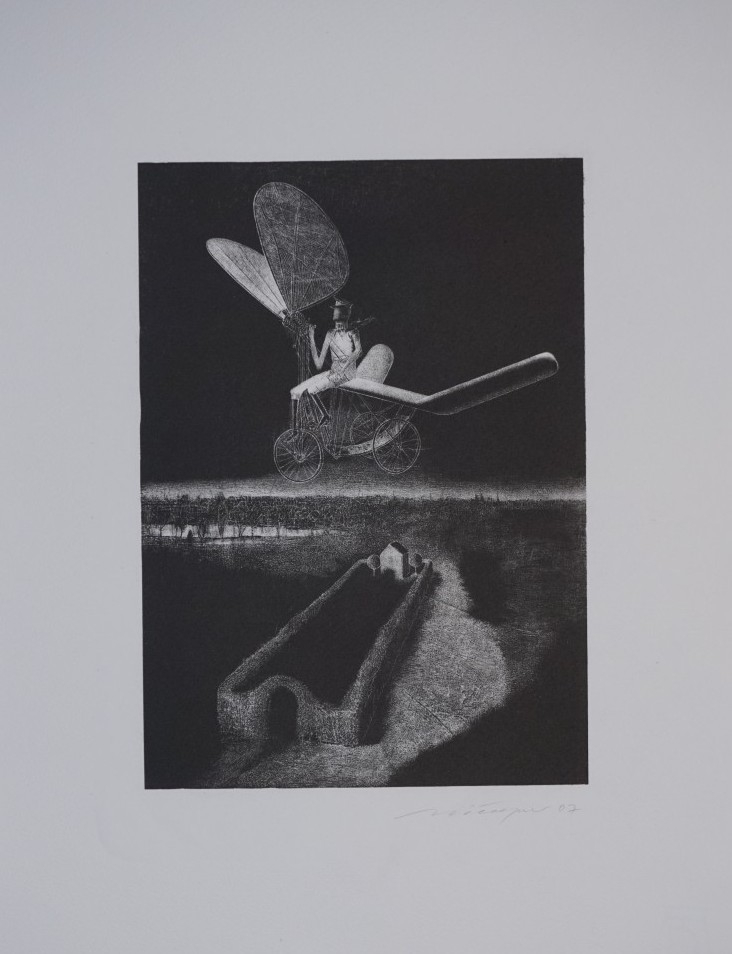 Galerie P. überfliegt Landschaft bei L.Schablithografie, 30,0x21,3 53,5x36,0 cm, EA II 2007Münzner Rolf