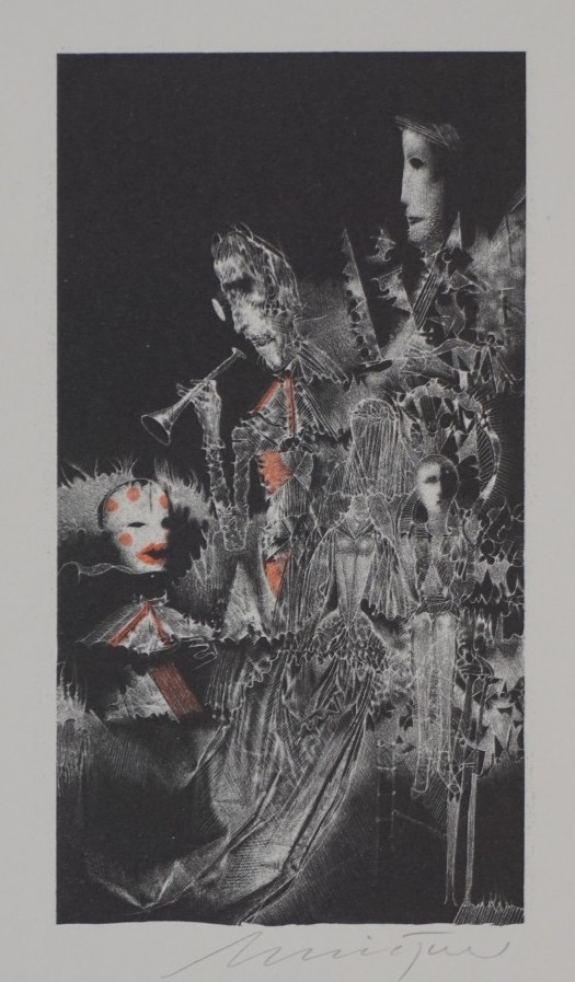 Galerie zu Jean Paul "Die wunderbare Gesellschaft in der Neujahrsnacht" Schablithografie, 17,0x9,8 22,2x14,5 cm, Münzner Rolf