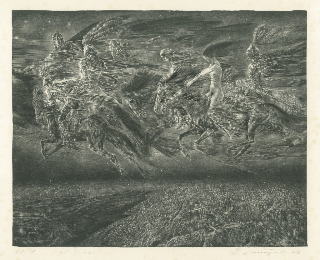 Galerie Bl.8 RückverwandlungMappe: Münzner R. "Der Meister und Margarita"Schablithografie, 23,7x29,5 36,5x48,5 cm, I 65/100 1974Münzner Rolf