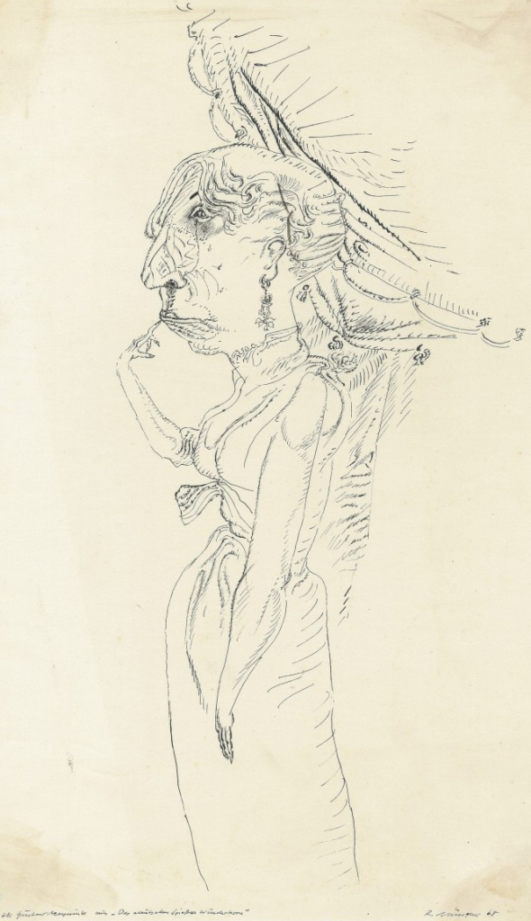 Galerie Zu "Des deutschen Spießers Wunderhorn" von Gustav MeyrinkFeder in Tusche, 29,0x18,5 cm, 1968Münzner Rolf