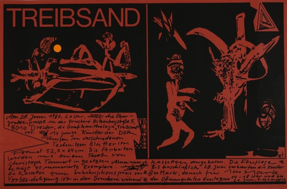 Galerie Einladung zur Mappenvorstell.Mappe: Obergrabenpresse "Treibsand" 1986Siebdruck, Henne Wolfgang
