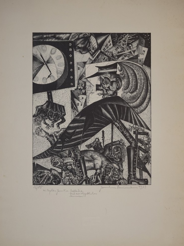 Galerie zu Stephan Hermlin: Ballade "Nach zwei vergeblichen Sommern"Punzenstich, 41,8x32,7 69,7x53,5 cm, 56/80 1979Naumann Hermann