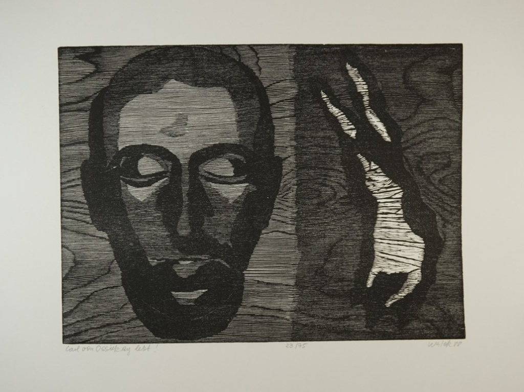 Galerie Carl von Ossietzky lebtMappe: Nachdenken über Carl von OssietzkyHolzschnitt, 28,0x38,0 54,0x39,0 cm, 23/75 1988Neumann Walek