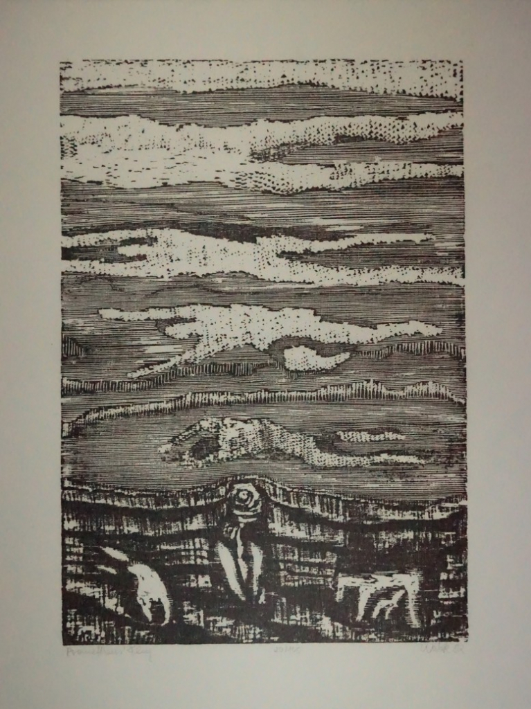 Galerie Bl.12 Prometheus FlugMappe: Aspekte 14.LDPD-ParteitagHolzschnitt, 39,2x27,3 50,0x40,0 cm, 20/100 1982Neumann Walek