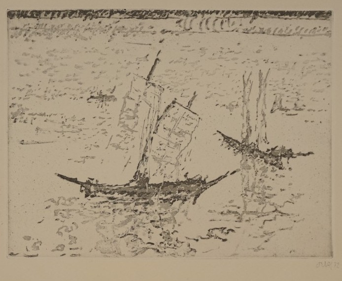 Galerie Boote im Ostchinesischen Meer DschunkenRadierung/Reservage, 24,5x32,0 38,0x49,2 cm, 1957/1972Niemeyer-Holstein Otto