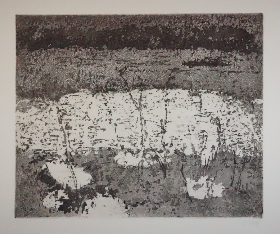 Galerie Boddenlandschaft im Winter Bl.1Mappe: Reclamverlag Grafikedition XVIII Niemeyer-Holstein O. "Zwischen Bodden und Meer"Radierung/Aquatinta, 27,5x33,5 39,7x56,5 cm, 56/130 1976Niemeyer-Holstein Otto
