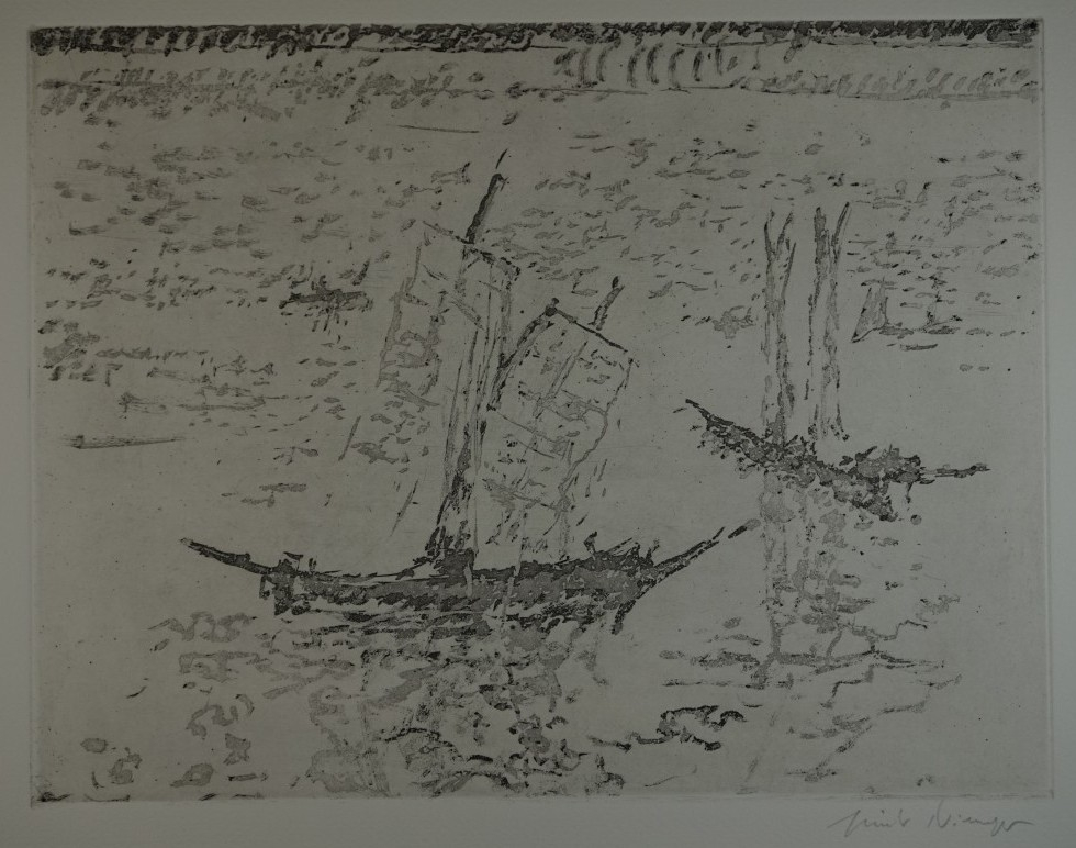 Galerie Boote im Ostchinesischen Meer DschunkenMappe: Hommage à Niemeyer-HolsteinRadierung/Reservage, 24,7x32,0 70,0x53,0 cm, 10/45 1957/1995Niemeyer-Holstein Otto