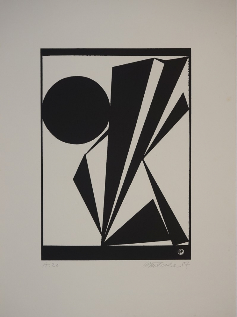 Galerie Konstruktive Komposition mit Kugel IHolzschnitt, 44,3x31,7 70,0x50,5 cm, 1-20 1987Nitzsche Dietrich