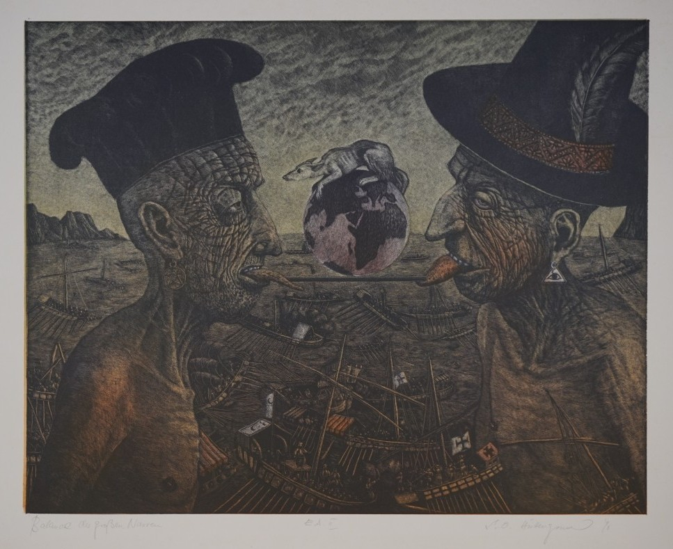 Galerie Balance der großen NarrenFarbholzriss/Irisdruck, 39,5x50,0 53,9x75,0 cm, EA II 1998Otto-Hüttengrund Siegfried