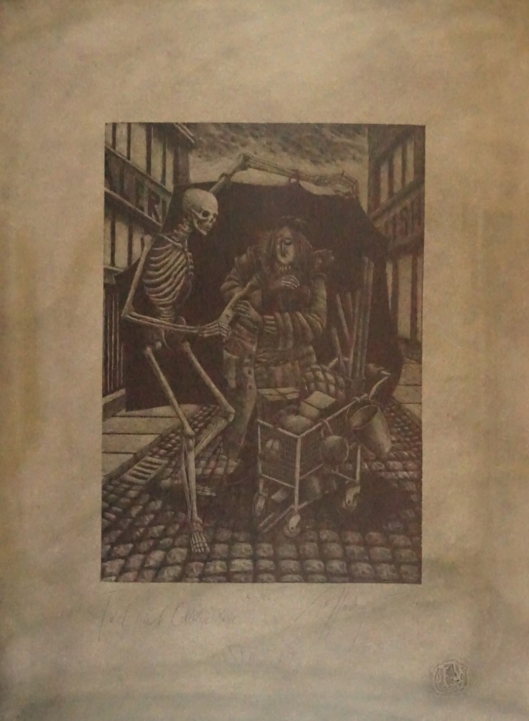 Galerie Bl.17 Tod und ObdachloserMappe: Otto-Hüttengrund S. "Ein Totentanz"Holzriss, 27,9x19,5 47,5x33,8 cm, 3/8 2002Otto-Hüttengrund Siegfried