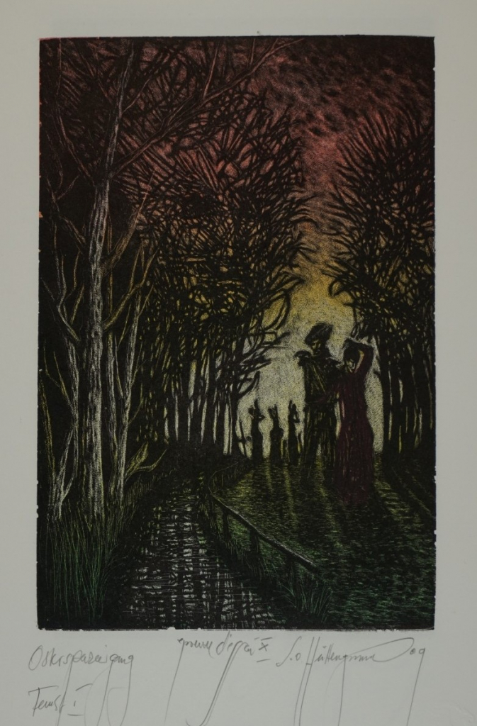 Galerie Bl.4 OsterspaziergangMappe: Otto-Hüttengrund S. "Faust"Farbholzriss/Irisdruck, 20,3x13,6 36,5x27,0 cm, 2/30 2010Otto-Hüttengrund Siegfried