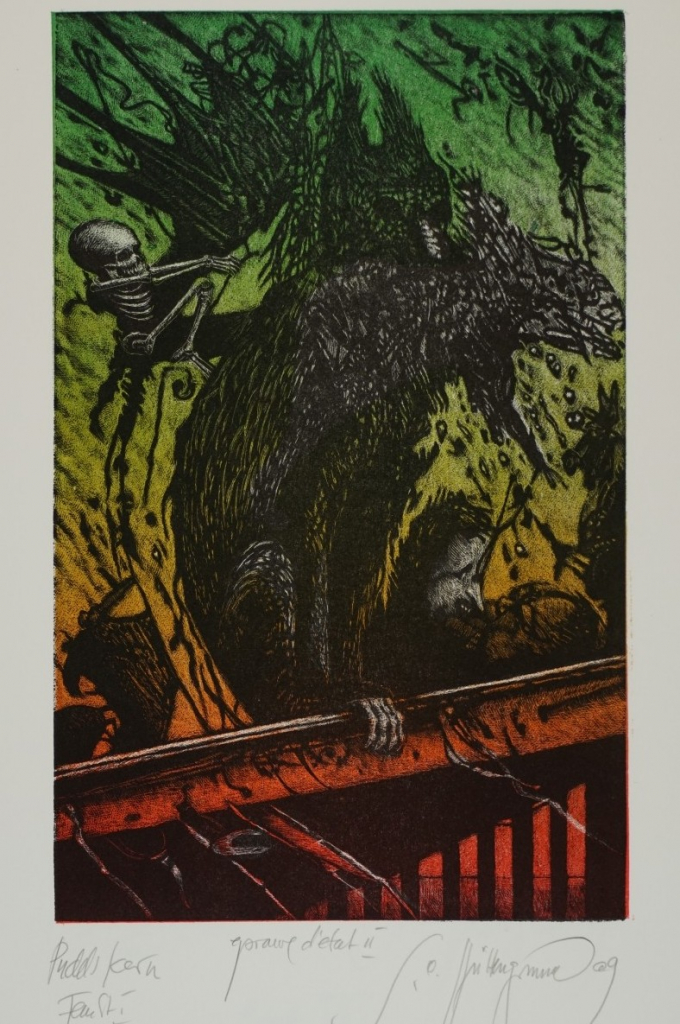 Galerie Bl.5 Pudels KernMappe: Otto-Hüttengrund S. "Faust"Farbholzriss/Irisdruck, 22,0x13,8 36,5x27,0 cm, 2/30 2010Otto-Hüttengrund Siegfried