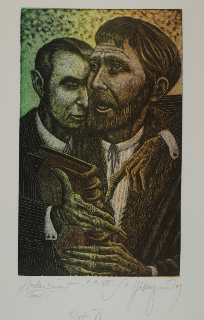 Galerie Bl.6 StudierzimmerMappe: Otto-Hüttengrund S. "Faust"Farbholzriss/Irisdruck, 21,0x12,8 36,5x27,0 cm, 2/30 2010Otto-Hüttengrund Siegfried