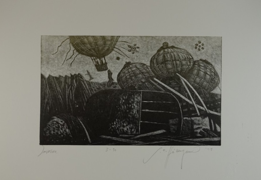 Galerie Bl. 8 InvasionMappe: 13.HolzbildhauerpleinairFarbholzriss/Irisdruck, 15,8x26,2 30,0x40,0 cm, 3-30 2013Otto-Hüttengrund Siegfried