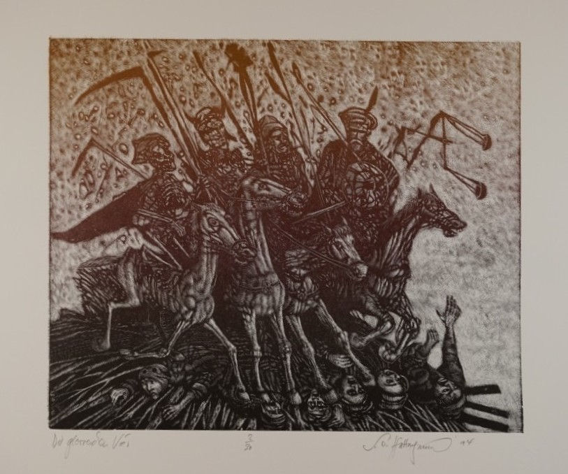 Galerie Bl. 4 Die glorreichen VierMappe: 14.HolzbildhauerpleinairHolzriss, 23,3x28,2 30,0x40,0 cm, 2/30 2014Otto-Hüttengrund Siegfried