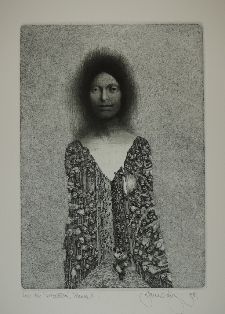 Galerie Bl.5Mappe: Grafik-Presse "eikon" Brunowsky A. "Lob der verwickelten Träume"Radierung, 25,5x17,5 52,0x39,0 cm, 30/50Brunowsky Albin