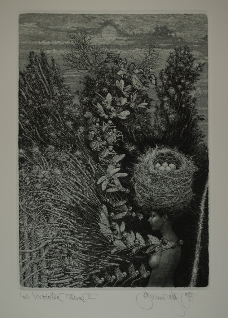 Galerie Bl.6Mappe: Grafik-Presse "eikon" Brunowsky A. "Lob der verwickelten Träume"Radierung, 25,5x17,5 52,0x39,0 cm, 30/50Brunowsky Albin