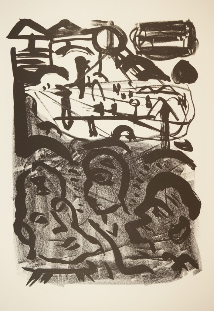 Galerie Und wie umarmt man ein ParteiprogrammMappe: Penck A.R. "Wolokolamsker Chaussee"Lithografie, 39,0x27,5 46,2x34,2 cm, Penck A.R.