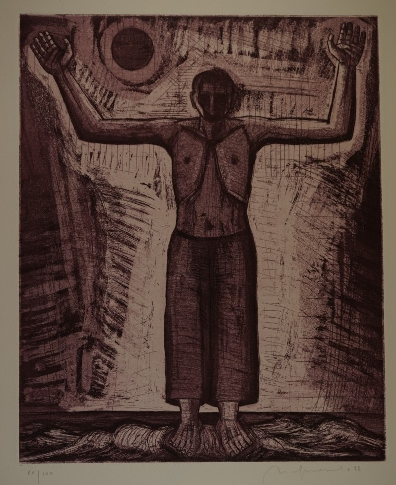 Galerie Bl.1 o.T. Mann mit ausgebreiteten ArmenMappe: Quevedo N. "Der Eisenwagen"Radierung, 37,5x31,5 53,5x39,5 cm, 60/100 1988Quevedo Nuria