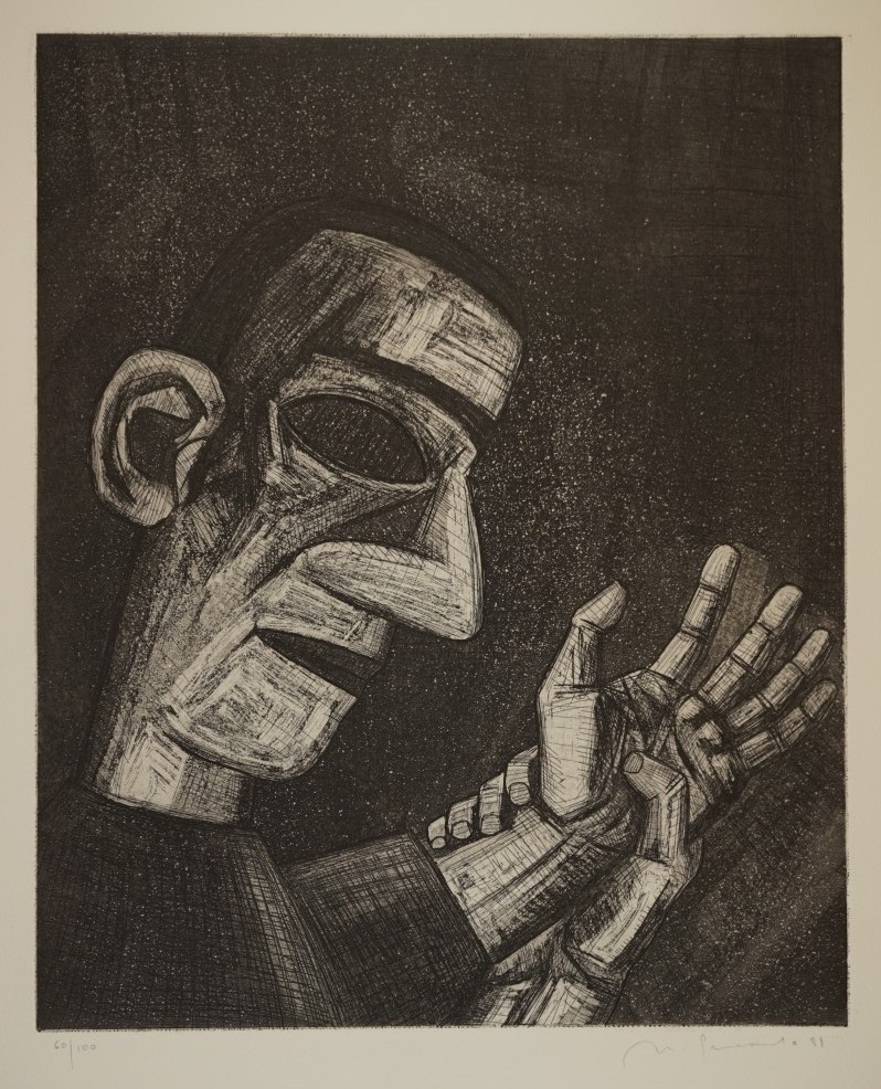 Galerie Bl.3 o.T. Mann Hände umfassendMappe: Quevedo N. "Der Eisenwagen"Radierung, 37,4x30,5 53,5x39,5 cm, 60/100 1988Quevedo Nuria
