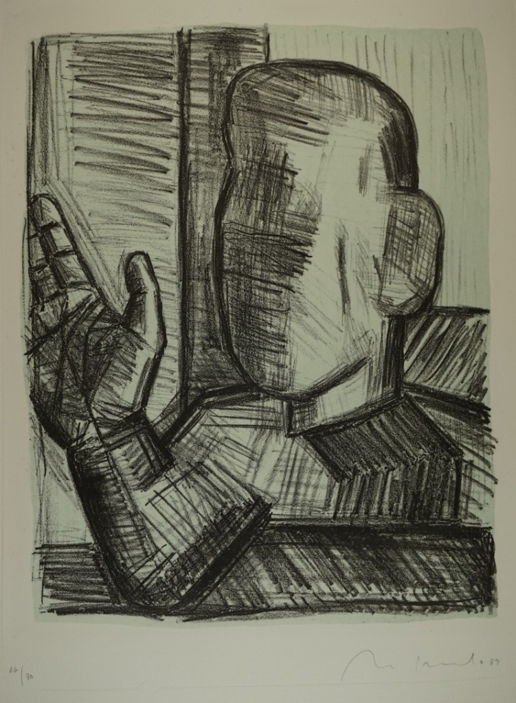 Galerie Bl.6 o.T. Kopf und ArmMappe: Berliner Grafikpresse Quevedo N. "Das Leben ist ein Traum"Lithografie, 36,5x28,0 53,0x40,0 cm, 66/100 1989Quevedo Nuria