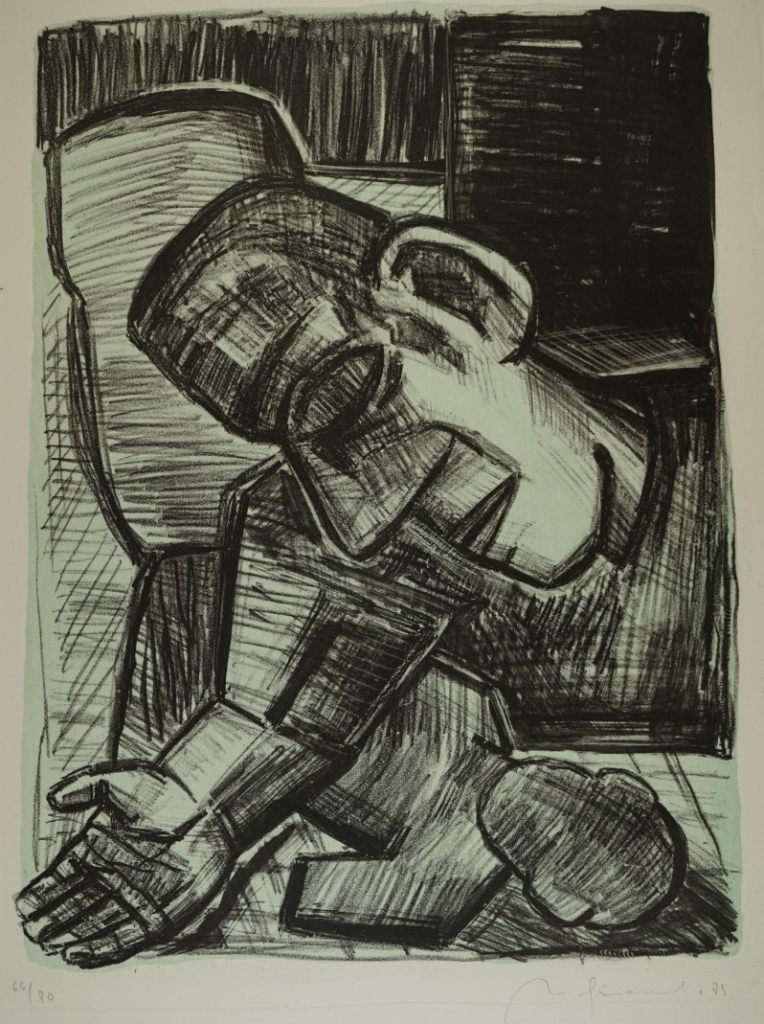 Galerie Bl.7 o.T. Mann ausladendMappe: Berliner Grafikpresse Quevedo N. "Das Leben ist ein Traum"Lithografie, 40,0x29,5 53,0x40,0 cm, 66/100 1989Quevedo Nuria