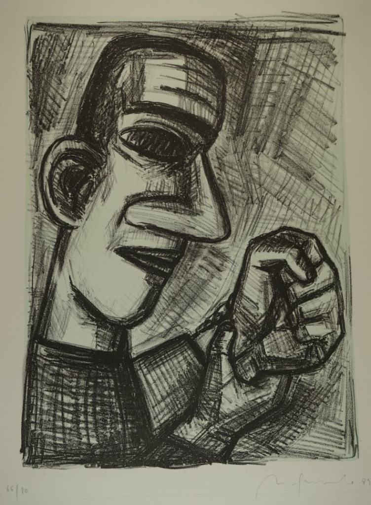 Galerie Bl.8 o.T. Mann Faust ballendMappe: Berliner Grafikpresse Quevedo N. "Das Leben ist ein Traum"Lithografie, 38,0x28,0 53,0x40,0 cm, 66/100 1989Quevedo Nuria