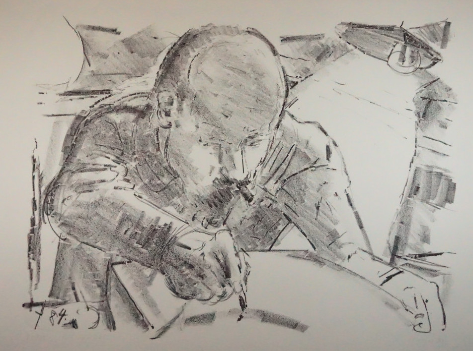 Galerie Selbstporträt Bl.2Mappe: Edition Arwil "hommage á alois senefelder"Lithografie, 35,0x47,0 39,0x53,0 cm, 35/55 1984Burger Dietrich
