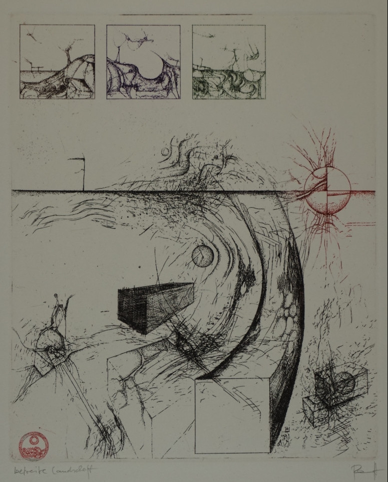 Galerie Bl.4 Befreite LandschaftMappe: Ranft T. "Hyperion II" zu Fr. HölderlinFarbradierung, 17,8x14,8 53,5x38,0 cm, 6/10 2013Ranft Thomas