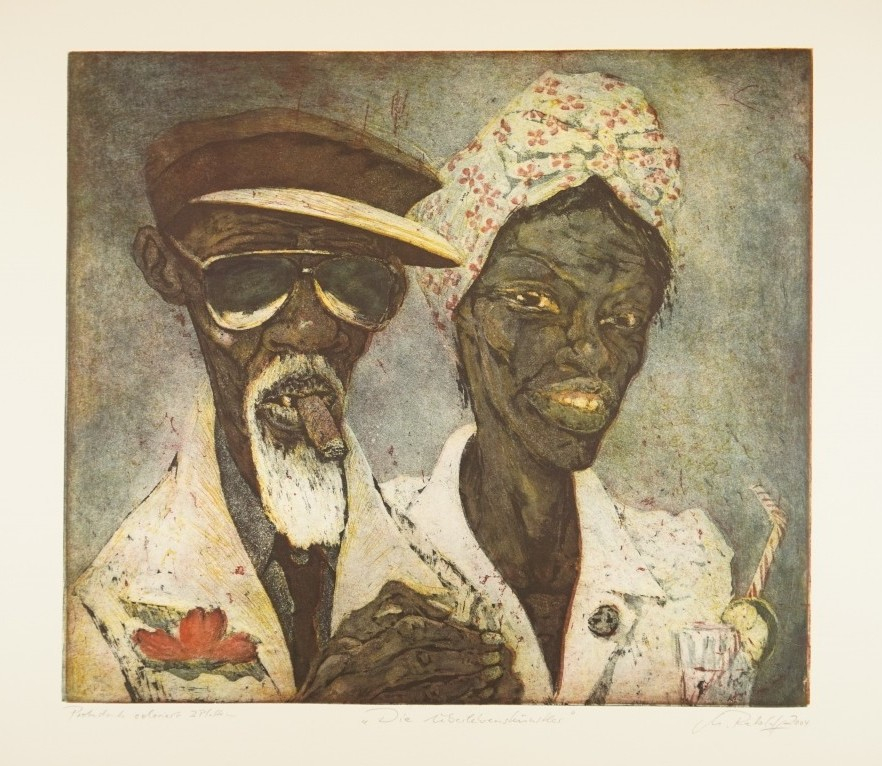 Galerie Die Überlebenskünstlercolorierte Radierung, 36,7x42,0 58,5x68,0 cm, Probe 2004Retzlaff Markus