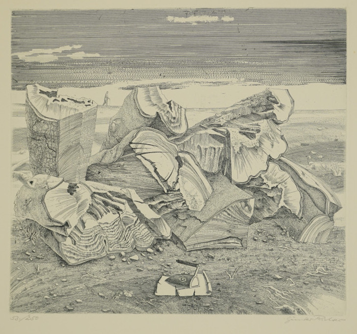 Galerie StrandstückMappe: Reclamverlag Grafikedition VI "In diesem Land"Radierung, 31,0x34,0 40,0x50,0 cm, 53/250 1979Richter Günter