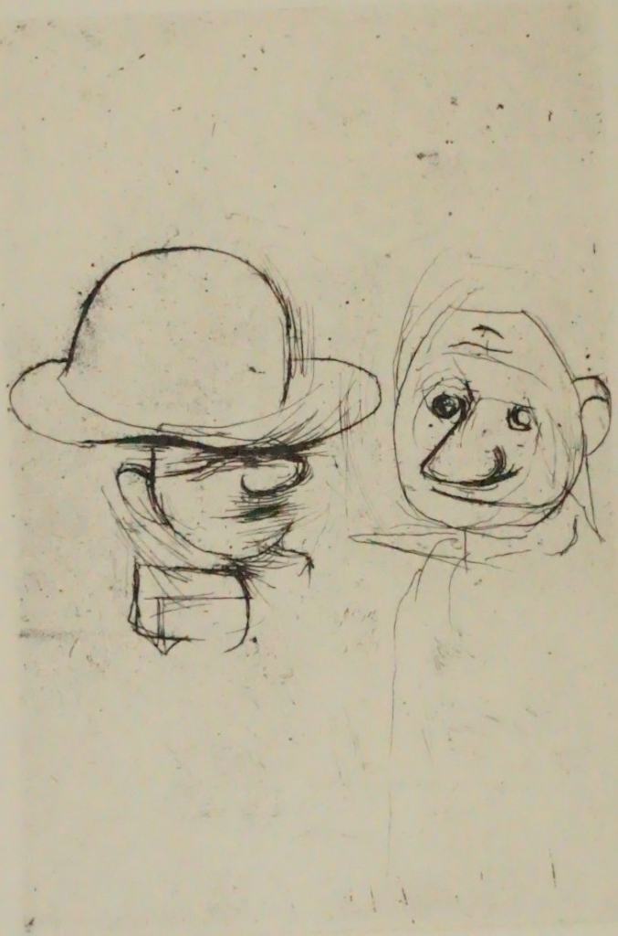 Galerie Bl.2 Maske mit steifem Hut und Gesicht.Mappe: Grafik-Presse "eikon" "Kinderfastnacht"Radierung, 13,2x9,0 38,0x26,5 cm, 22/60 1981Richter Hans Theo