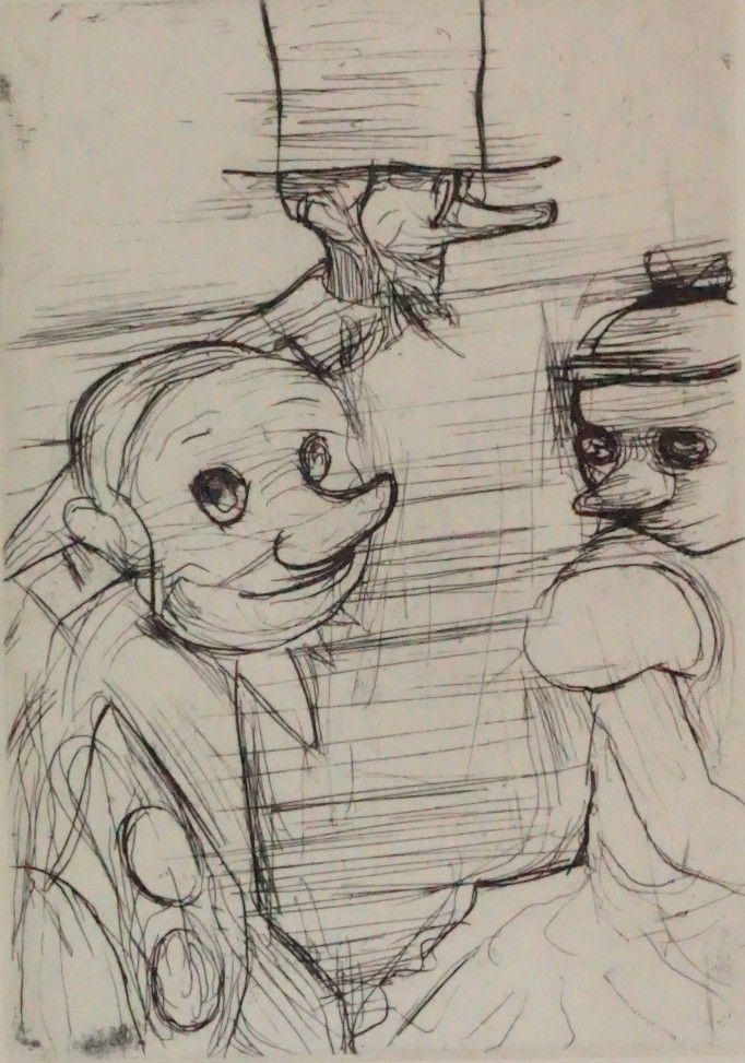 Galerie Bl.7 3 Masken die mittlere mit ZylinderMappe: Grafik-Presse "eikon" "Kinderfastnacht"Radierung, 13,5x9,5 38,0x26,5 cm, 22/60 1981Richter Hans Theo