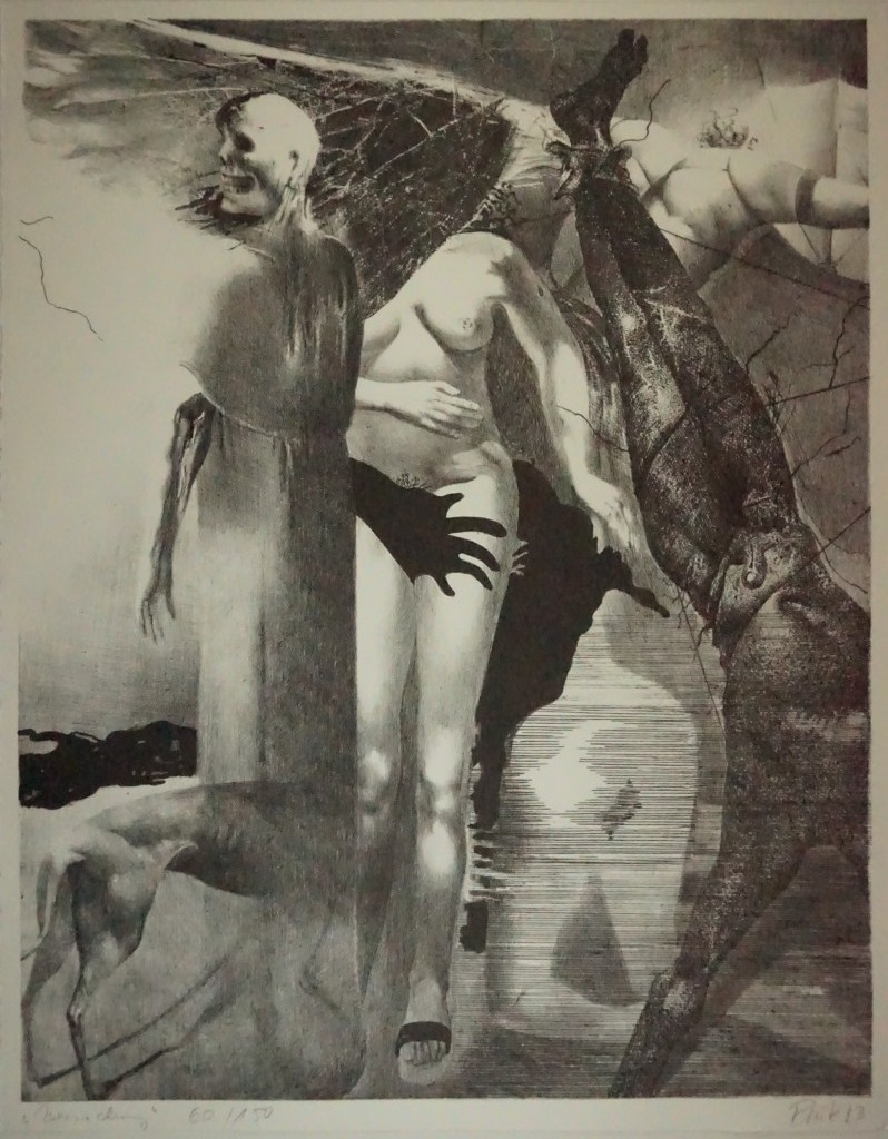 Galerie Versuchung Bl.5Mappe: Reclamverlag Grafikedition XV "Luther zu Ehren"Lithografie, 48,0x37,7 50,3x39,6 cm, 60/150 1983Rink Arno