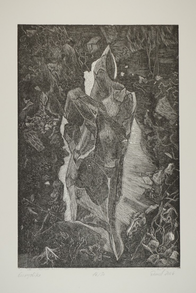 Galerie Bl.7 EurydikeMappe: 6.HolzbildhauerpleinairHolzriss, 26,8x18,0 39,5x29,8 cm, 16/30 2006Runst Wilfried