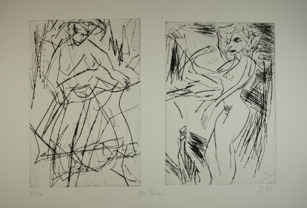 Galerie Die Tänzerin Bl.12Mappe: Obergrabenpresse "Treibsand" 1986Radierung, 30,3x20,3 29,3x20,0 cm, 5/40 1985Sandner Reinhard
