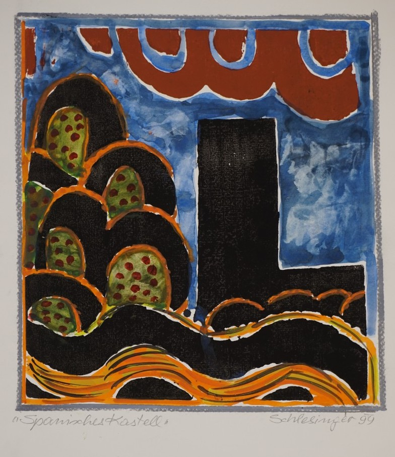 Galerie Spanisches Kastell 1Holzschnitt/Aquarell/Pastellkreide, 29,5x27,5 45,5x35,0 cm, 1999Schlesinger Gil