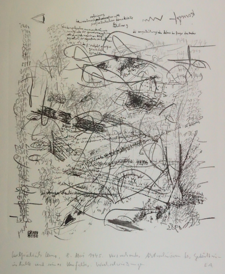 Galerie 8.Mai 1945 "Versuchendes Aktualisieren...Lithografie, 27,5x26,0 60,0x50,0 cm, EA 1985Claus Carlfriedrich