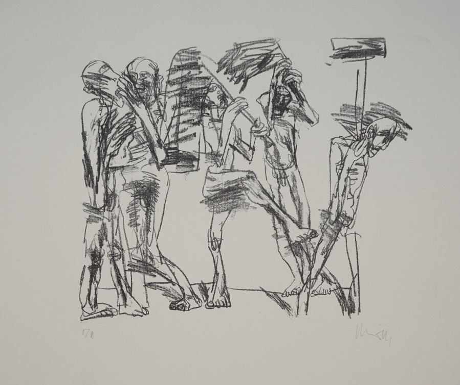 Galerie Wohin-nun ? (Männer mit Fahnen) Bl.IILithografie, 36,5x44,0 54,0x69,5 cm, 5/10 1998Schnürpel Peter
