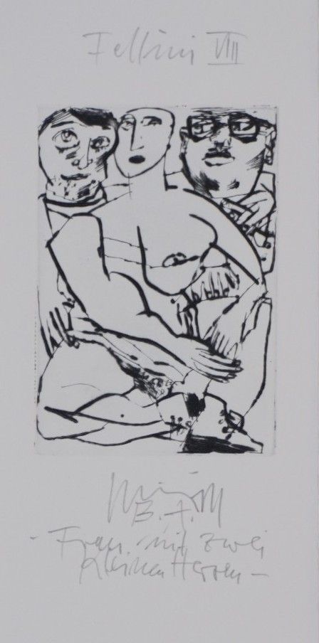 Galerie Fellini VIII - Frau mit zwei kleinen HerrenRadierung, 10,7x7,4 20,5x10,1 cm, EA 2004Schnürpel Peter
