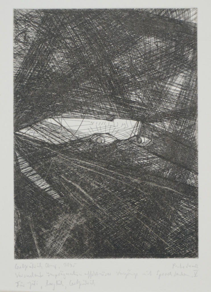 Galerie "Versuchende Imprägnation affektuöser Vorgänge…Radierung, 18,7x12,0 53,5x39,5 cm, EA 1975Claus Carlfriedrich