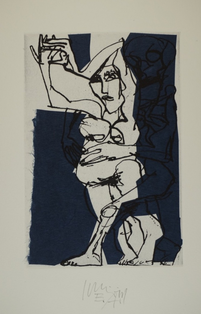 Galerie Bl.10 mit blauem PapierMappe: Schnürpel P. "Black Dances-Etüden"Reservage/Chine Collé, 21,5x14,7 39,5x27,0 cm, EASchnürpel Peter