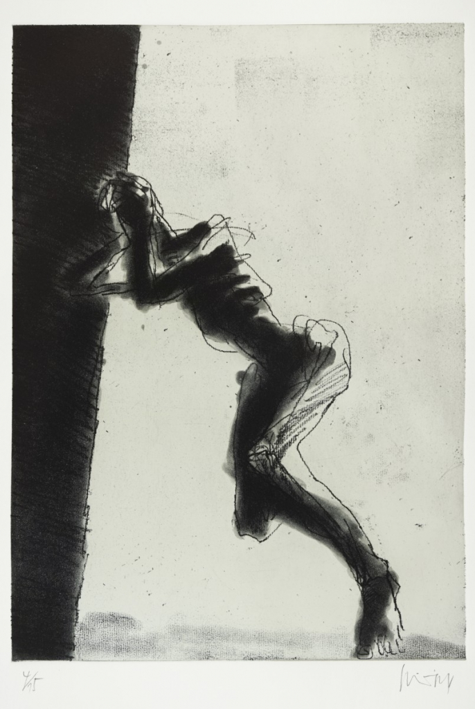 Galerie Bl.7 o.T. (Stürzender)Mappe: Leitermannedition "Das Lächeln am Fuße der Leiter"Vernis mou/Aquatinta/Pinselätzung, 44,1x31,1 72,0x53,0 cm, 1/15 1990Schnürpel Peter