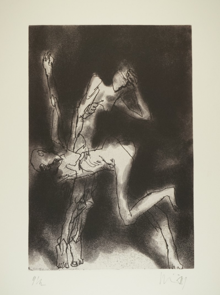 Galerie Bl.2 IneinanderstürzendeMappe: Schnürpel P. "Figuren/Beispiele"Vernis mou/Aquatinta/Pinselätzung, 29,3x19,9 52,0x39,5 cm, 9/12 1992Schnürpel Peter